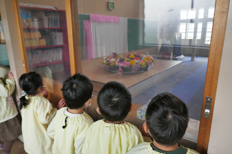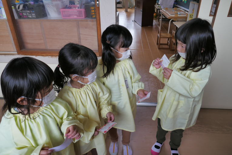 うめぐみさんにもメッセージが・・ 「ようちえんのうたったりおどったりするお部屋にあるよ」