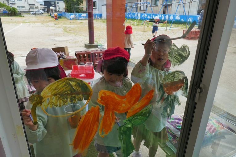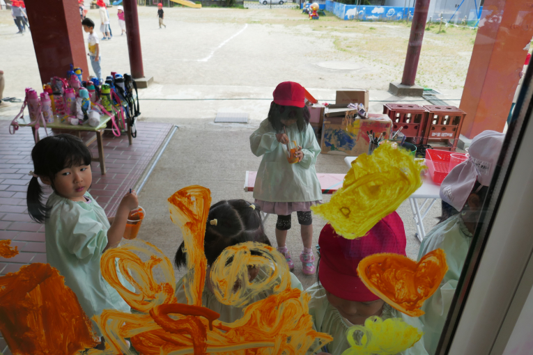 今まで「だめよー」だった網戸にも 思い切って描いてみたら面白かったねー