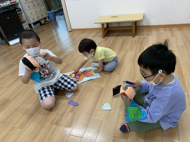 きりんさんの歯は、ハサミでチョキチョキ!そして、ノリでぺたぺた!作るって面白いね