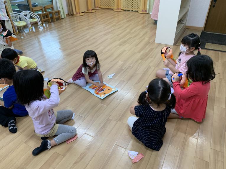 その後は、「はをみがきましょう」の音楽に合わせて、一緒に歯みがきをして遊びました