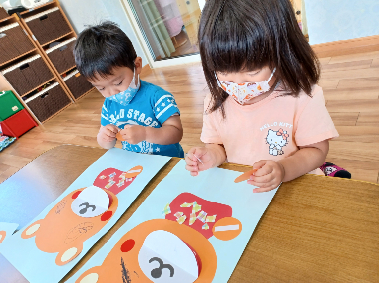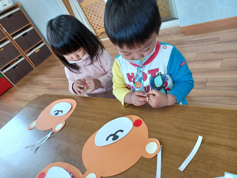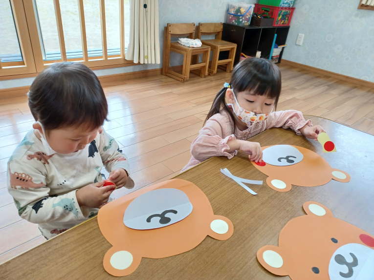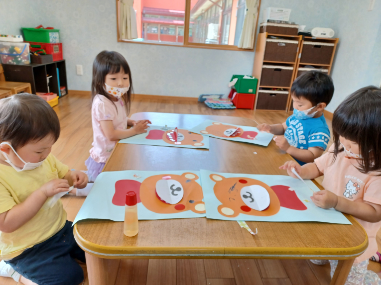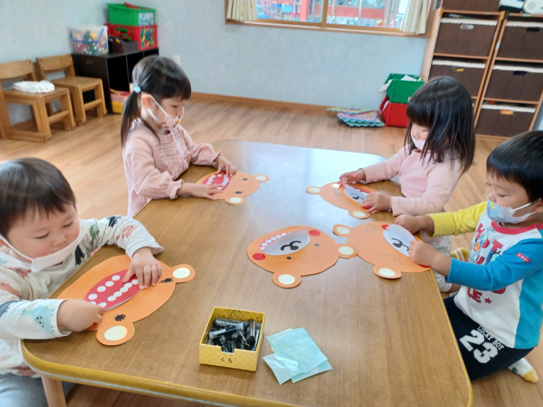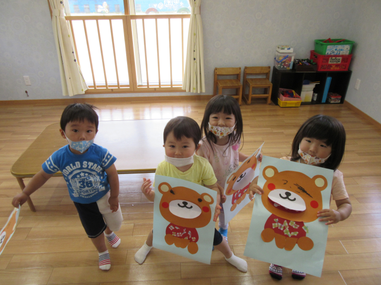ひよこ組さんは、虫歯予防デーに向けてクマさんの歯みがきセットを作りました✨