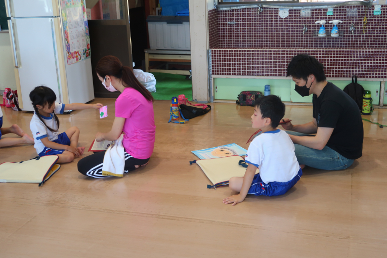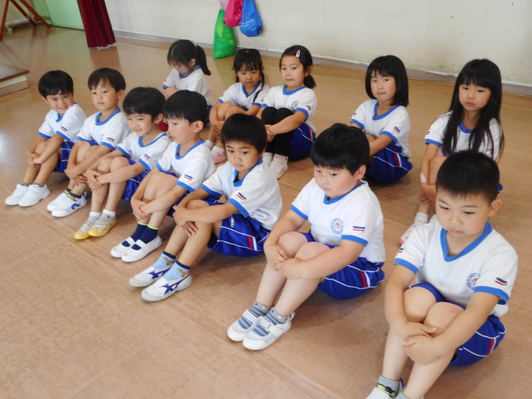 待ってる間に、姿勢のいい体操座り!みんな上手にできるようになったね!カッコイイ