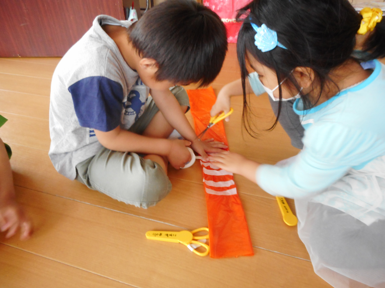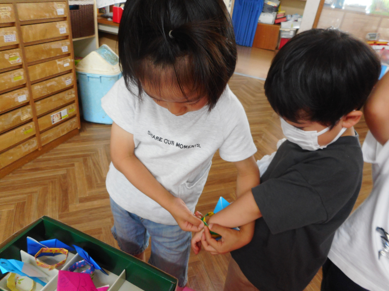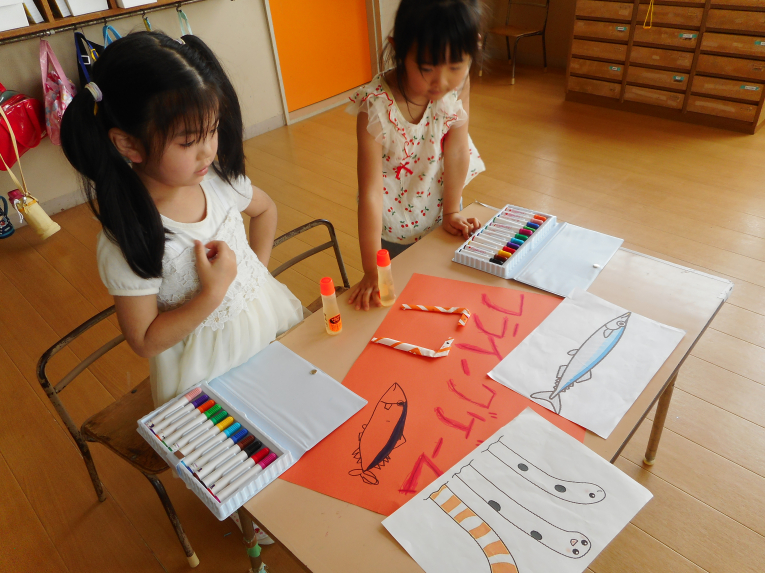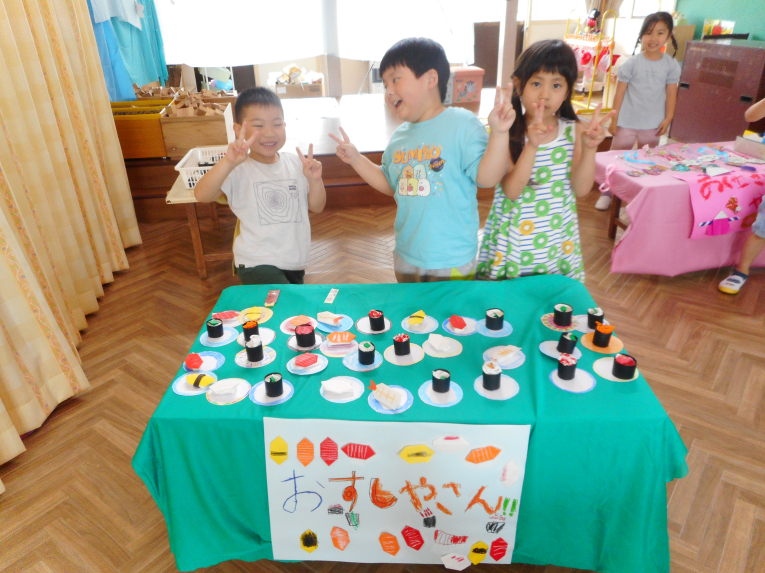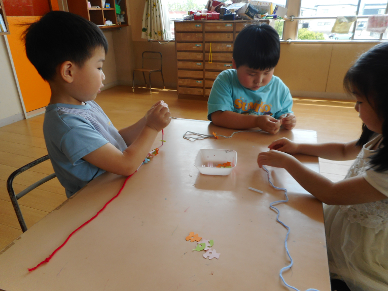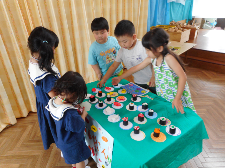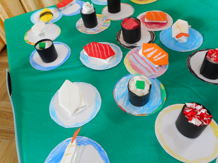 お買い物DAYに向けて、年長さんは『おすしやさん』と『アクセサリーやさん』をオープンすることになり、品物作り。