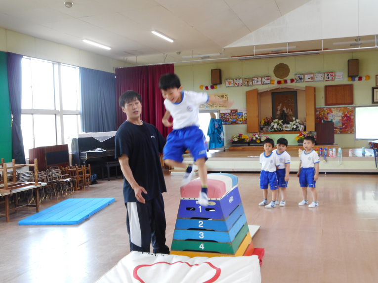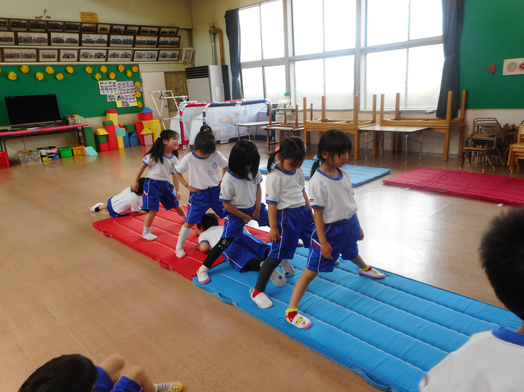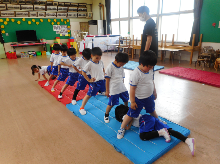 準備体操をしたら、マットや跳び箱をしたり・・・
