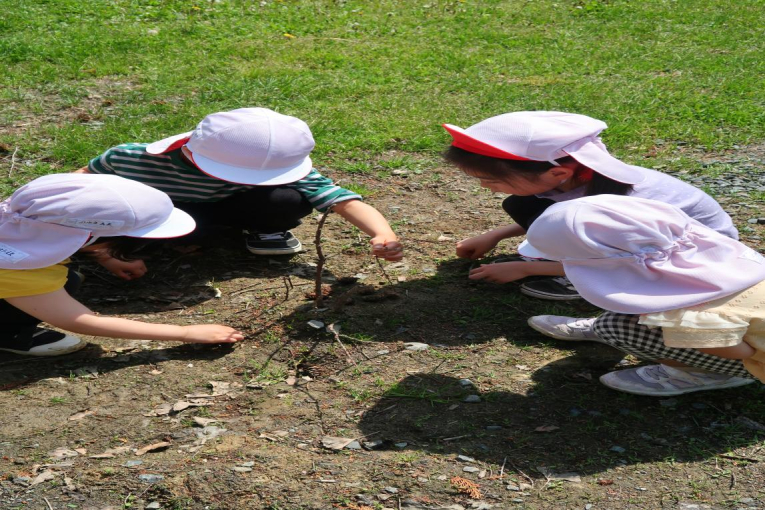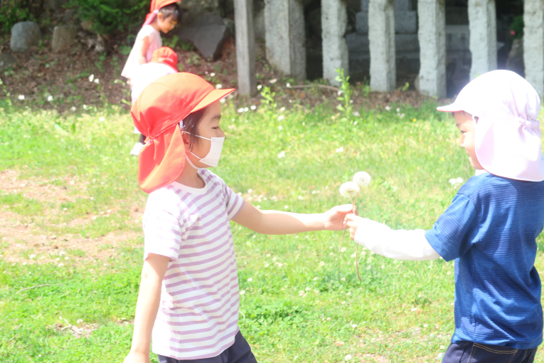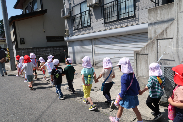 今年は散歩にどんどん出かけますよ~!!初めての散歩は年長さんと手をつないで道路を歩き、旧東部幼稚園跡地まで。