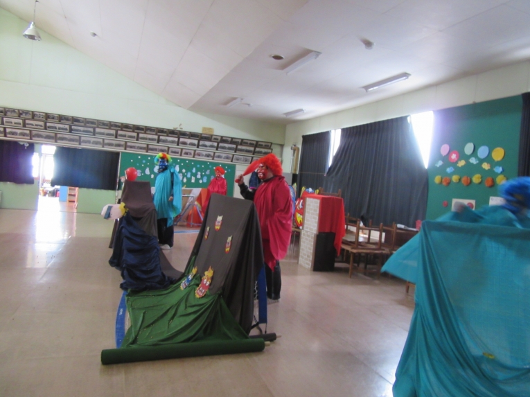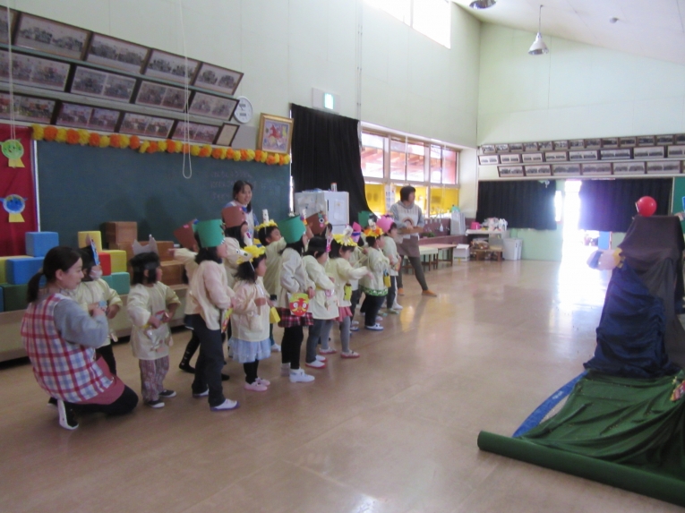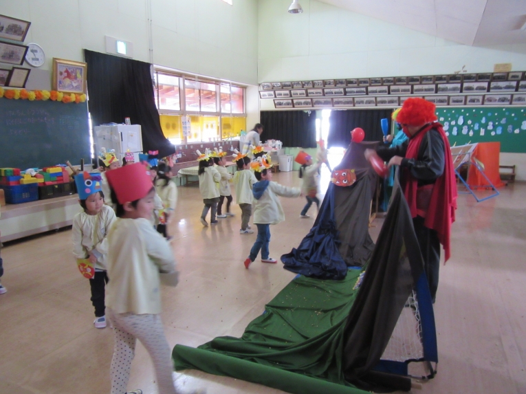 先生の出し物「おおかみと七ひきのこやぎ」のエプロンシアター