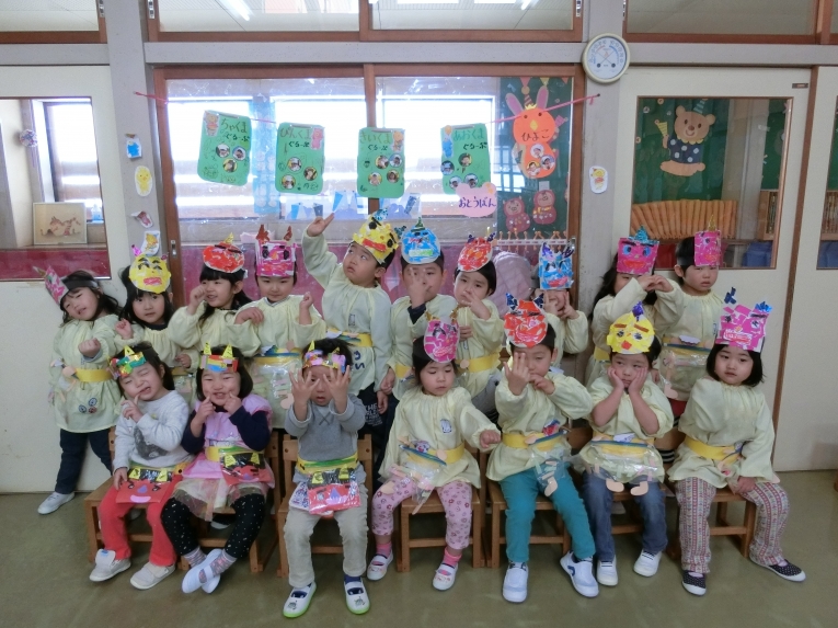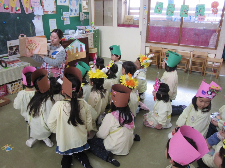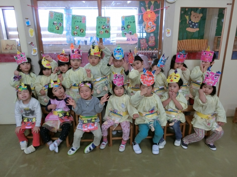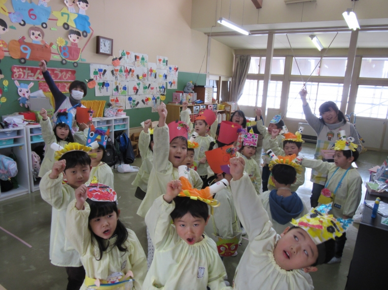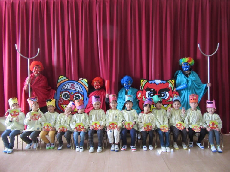 2月3日は節分でしたね「お家で豆まきしたよー!」「お父さん鬼だった!」などと、お家ではどのように豆まきをしたのかたくさん話をしてくれる子どもたちでした