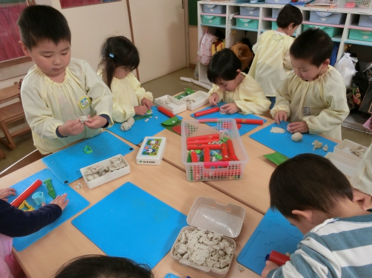 粘土遊びも変わらず大好きで、具体的なものを細かく丁寧に作り見せ合っています