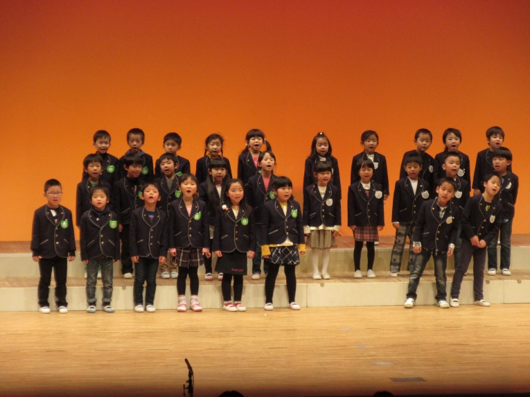 休憩をはさんで2部が始まります。2部は楽器あそびと歌。「365日の紙飛行機」は先生のピアノとキーボードに合わせてそれぞれの楽器を演奏しました。パートをしっかりと守って耳を澄ませて、リズムを取って、音を楽しめたかな? 年長クラスの鍵盤ハーモニカ演奏「きらきら星」に続いて、歌「たんぽぽ」 年中・年長クラスの歌「みどりの風と青い空」 年少・年中・年長クラスの歌「ありがとうの花」・・・みんなの歌声・・心を込めて大好きな人へ、遠い所で見守ってくれている人へ届きますように。