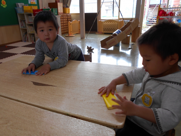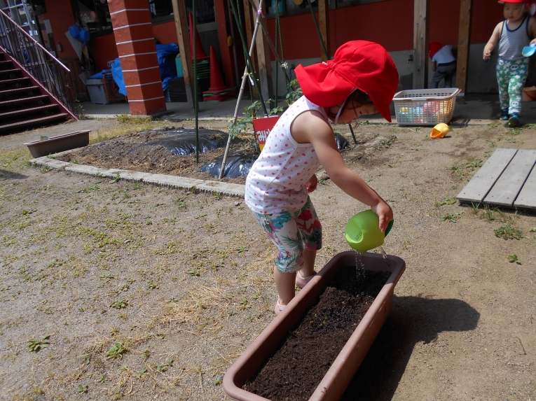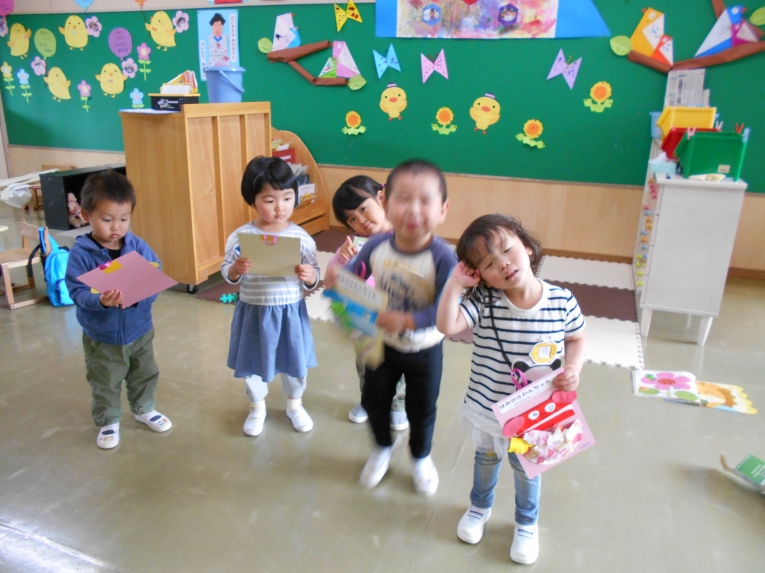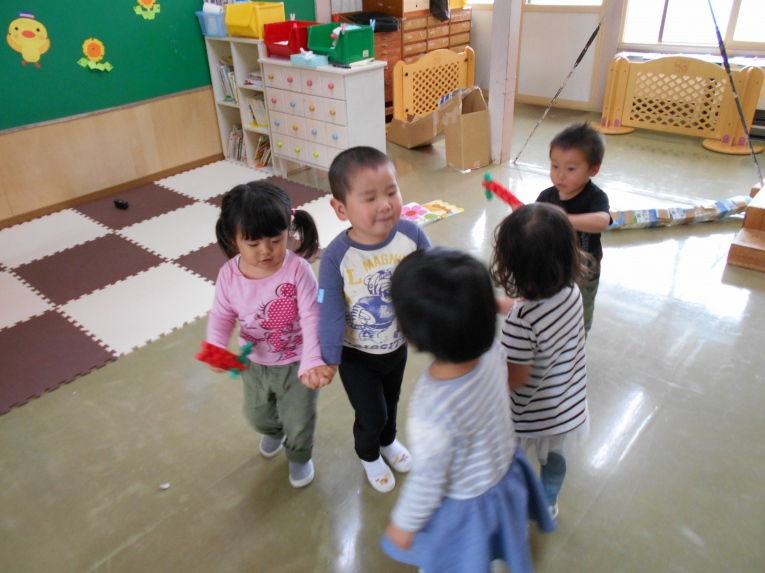 いよいよ6月に入りました。そろそろ梅雨の季節ですね。気温の高い日もあれば、肌寒い日もあり体調管理には十分気を付けていきたいと思います。そんな中でのひよこちゃんたちは毎日とっても元気いっぱいです。この頃友達の存在がとても大きくなり、一緒に遊ぶことがとっても楽しいようですこれからもかわいい笑顔をた~くさん見れますように・・・