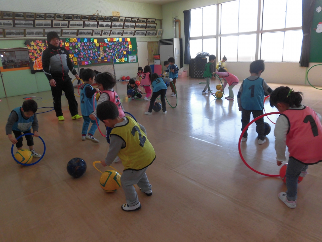ホールで元気いっぱいにサッカーをがんばっていました★