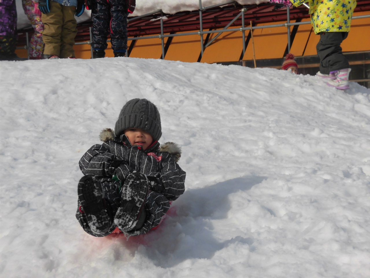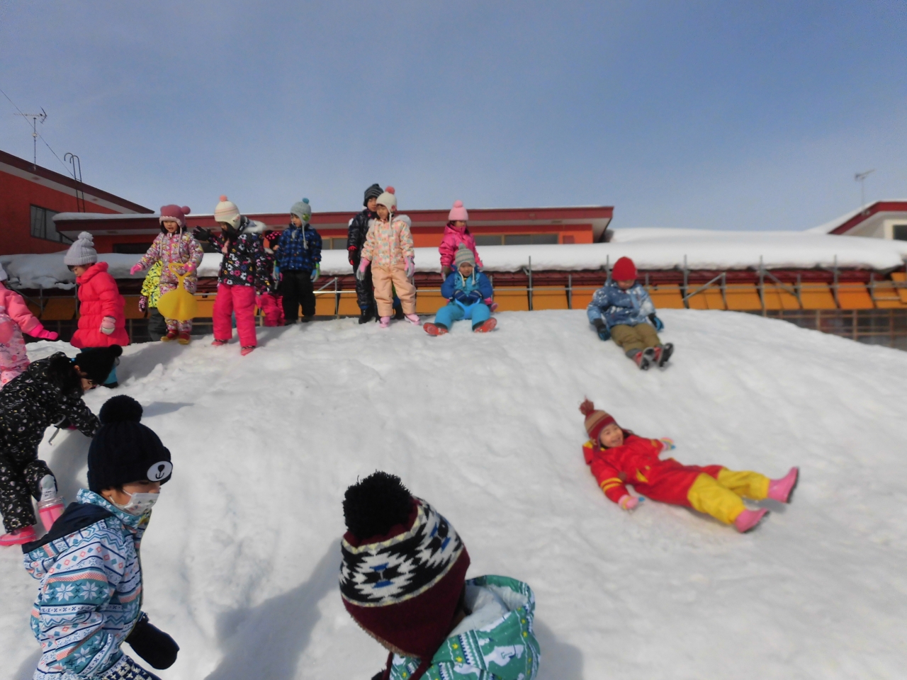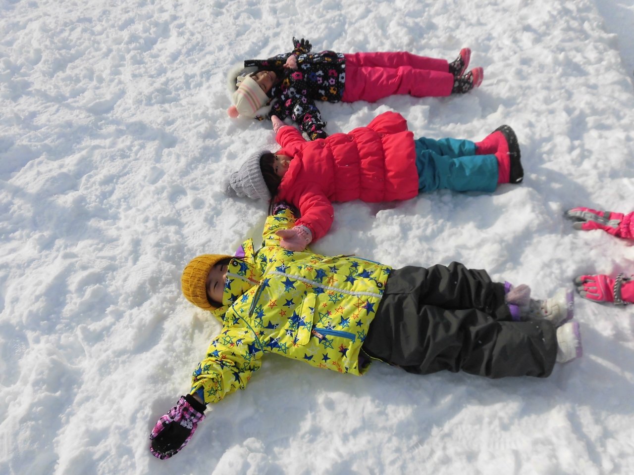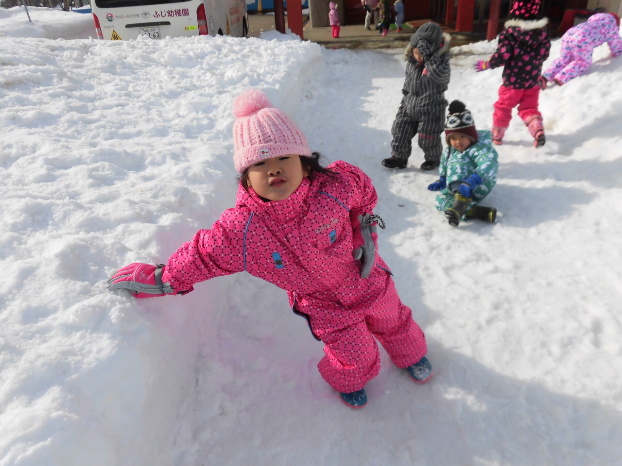 晴天の中、楽しみました!!かまくら作りや、足跡つけたり、寝っ転がったり・・・