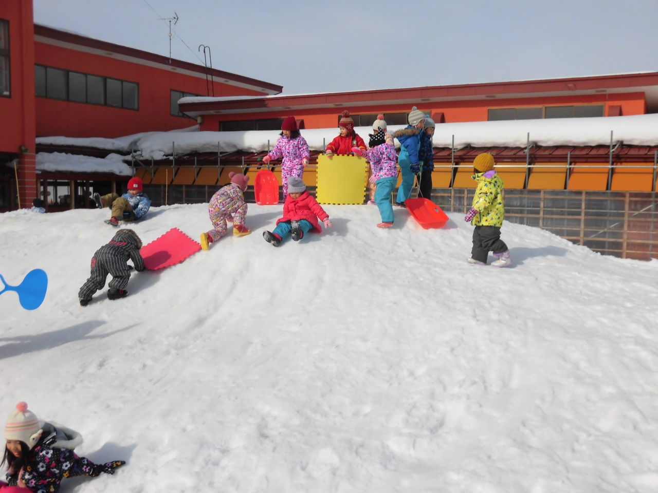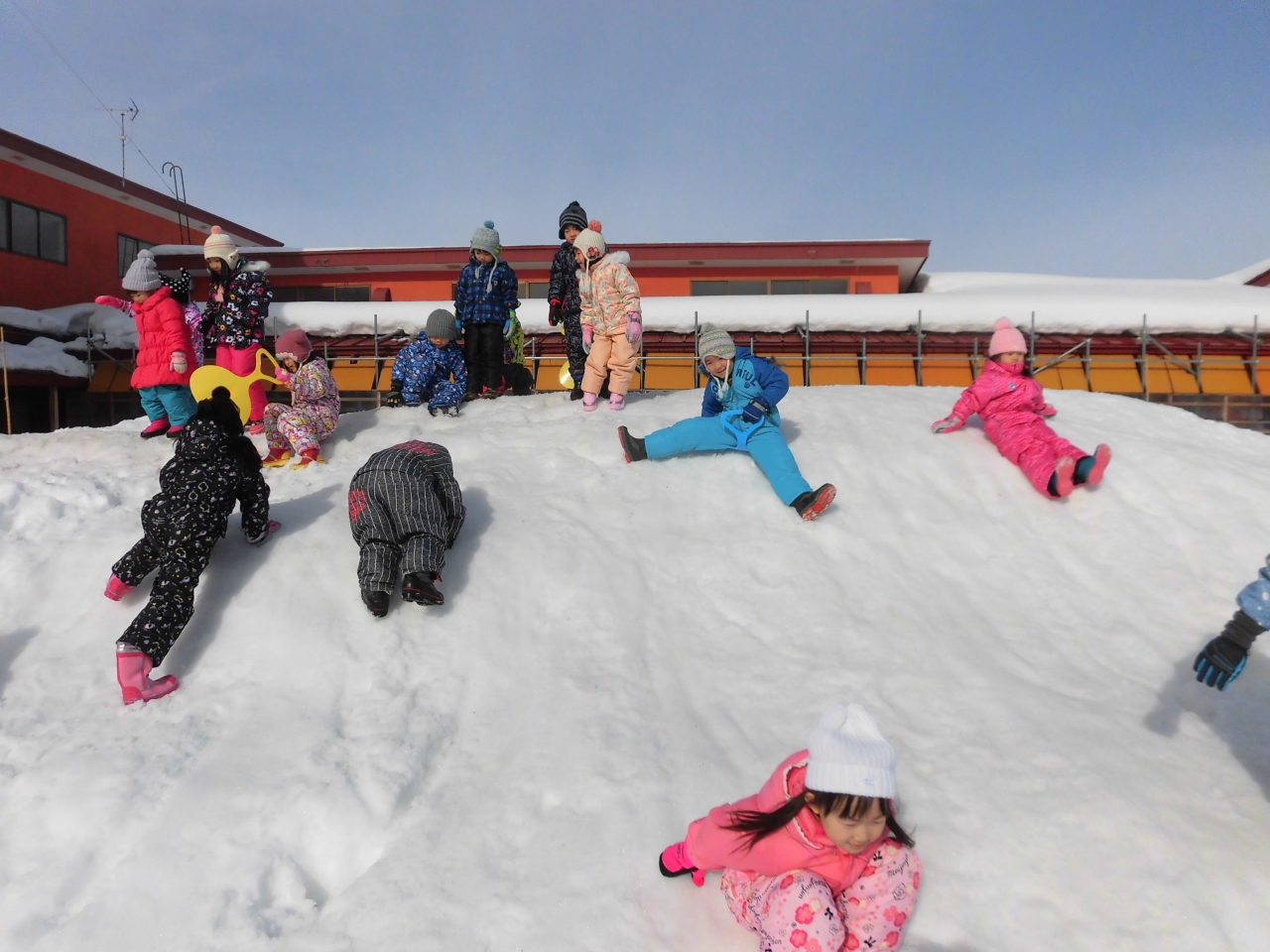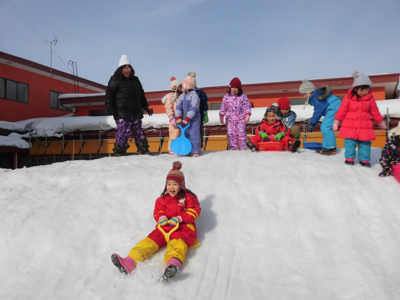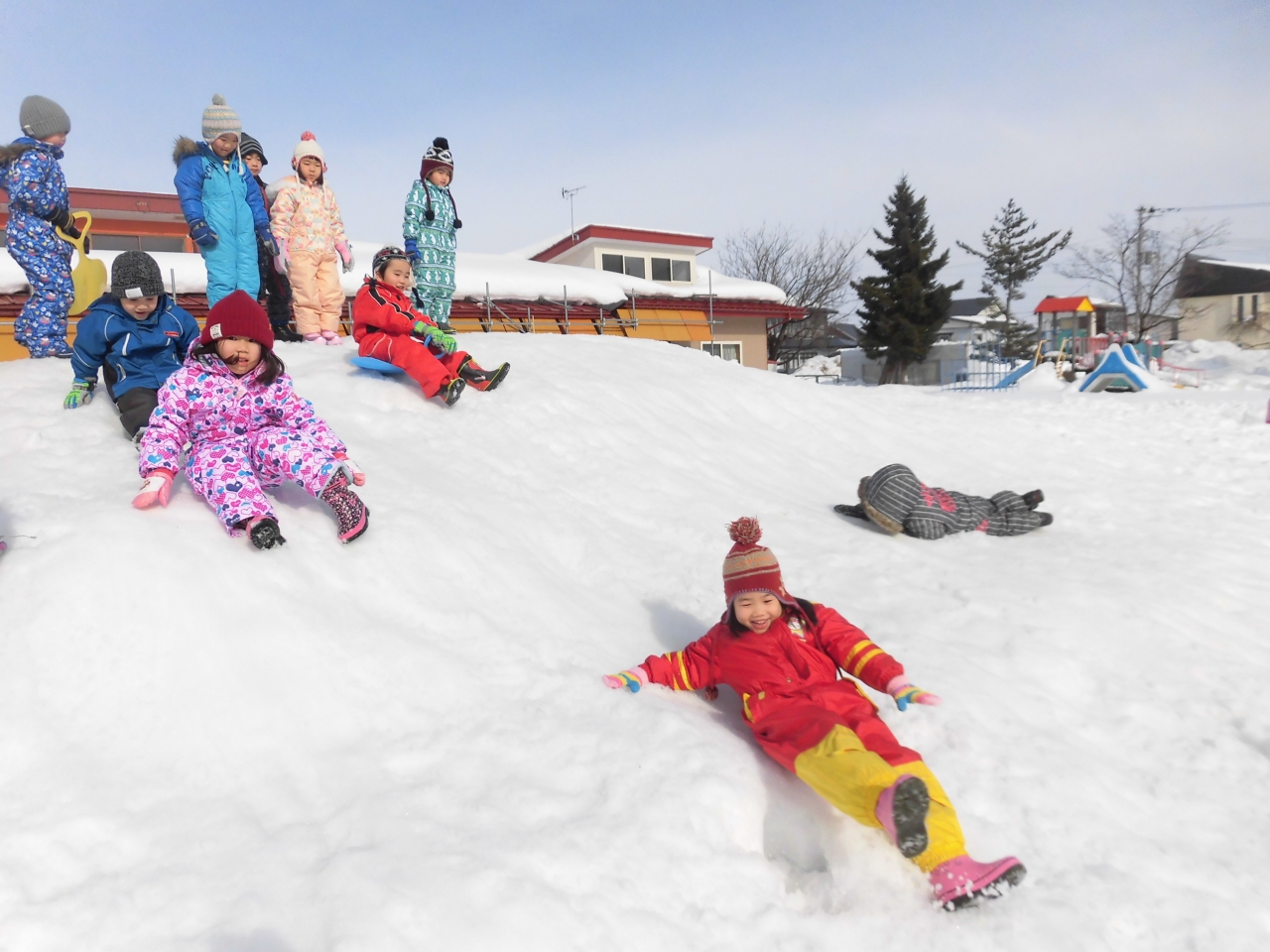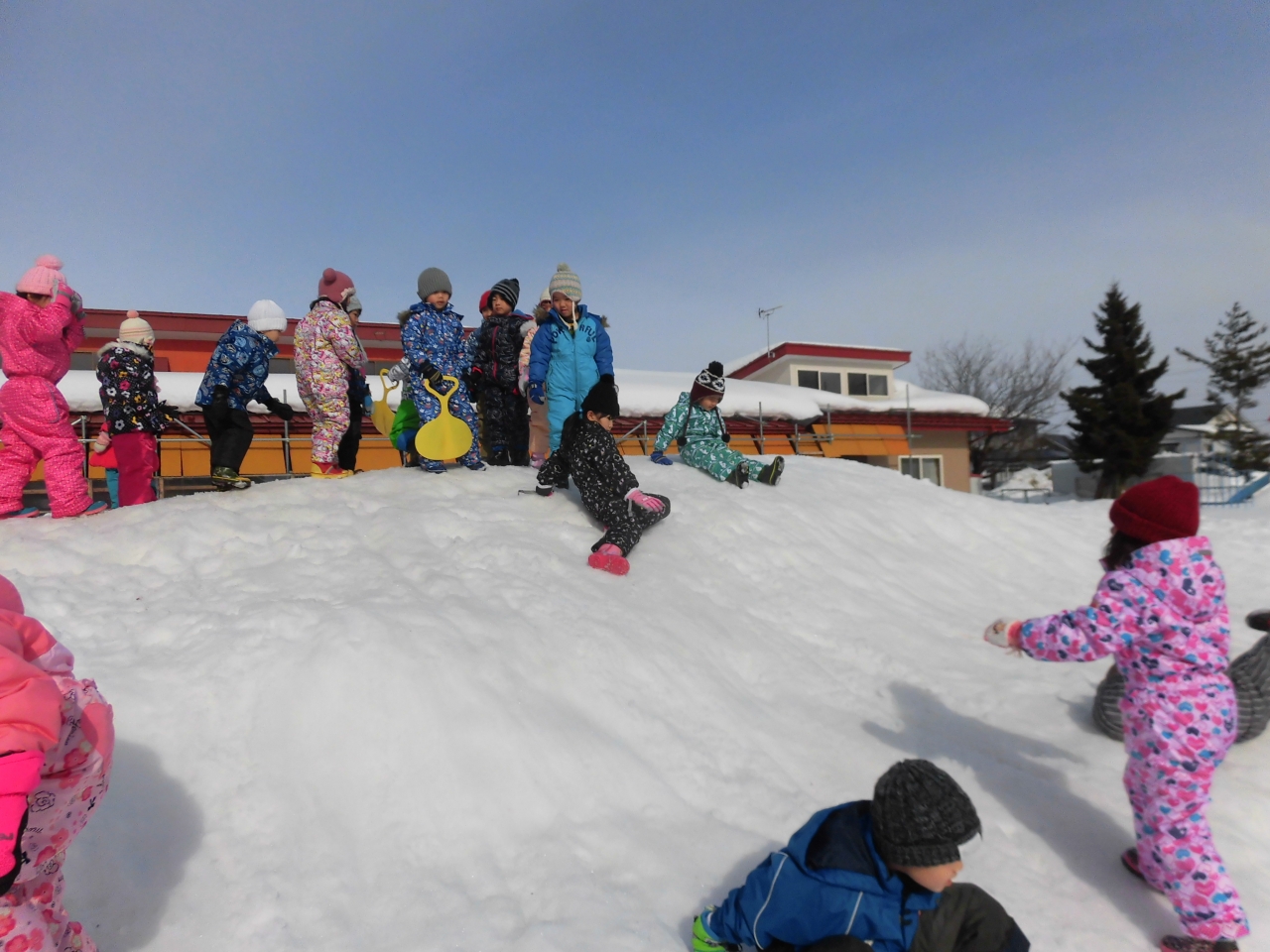 晴天の中、楽しみました!!かまくら作りや、足跡つけたり、寝っ転がったり・・・
