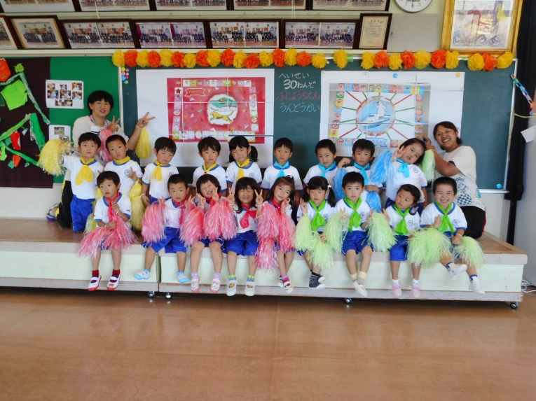 そして、今年は年中さんが「開幕セレモニー」で、歌あそびをご披露~ 「パレード」・・元気いっぱいな歌声を響きわたらせました。薬玉を割って、おめでとうをして、それからそれから・・?