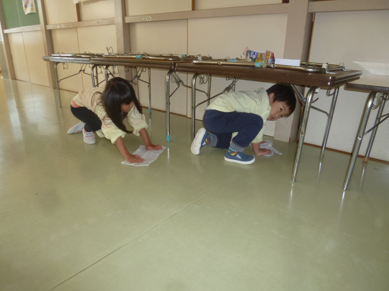 そしてそして・・お当番さんは「お掃除」~!雑巾がけも上手になりました(#^.^#)