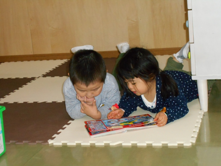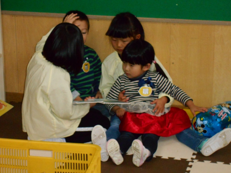 数人ずつに分かれて絵本を読んでもらいました