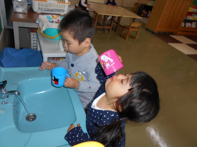 お外あそびのあとは手洗いうがいを頑張ります!
