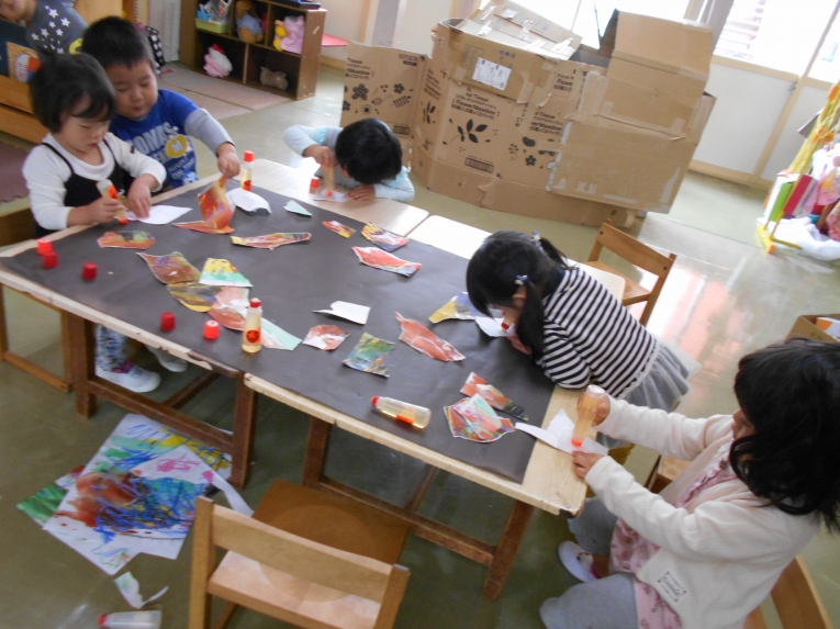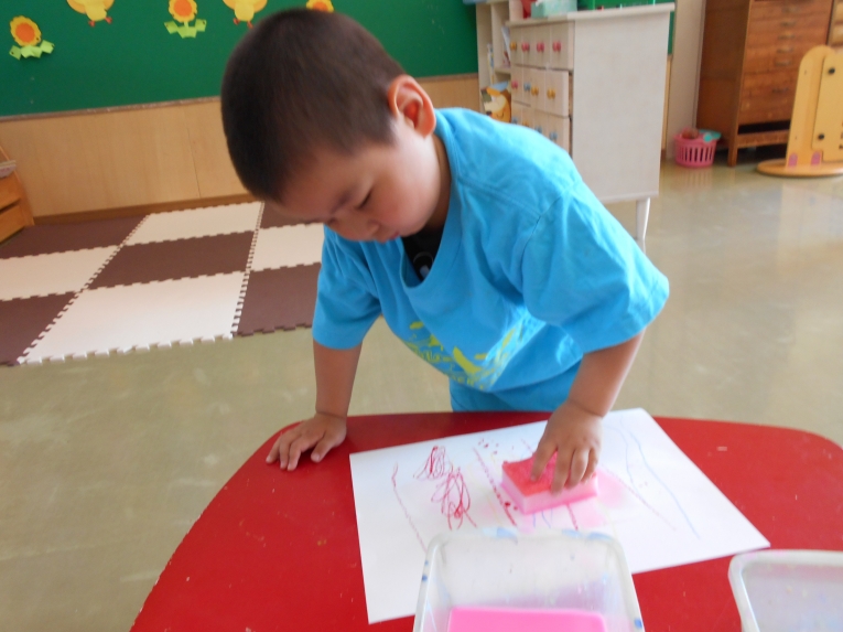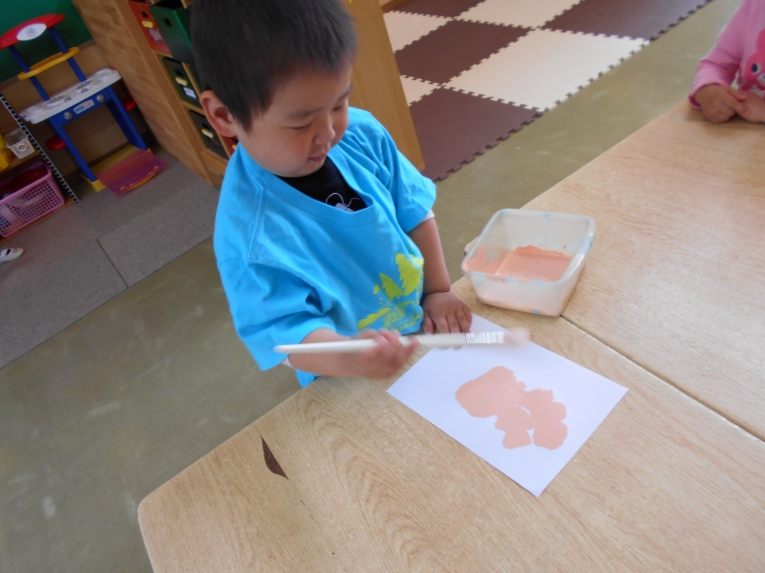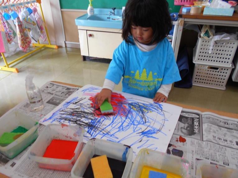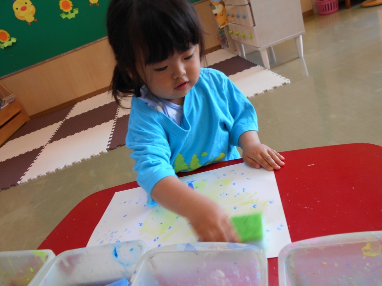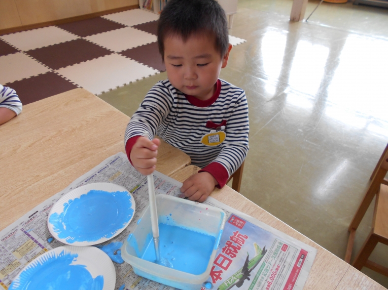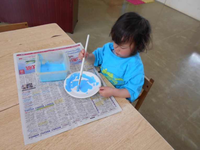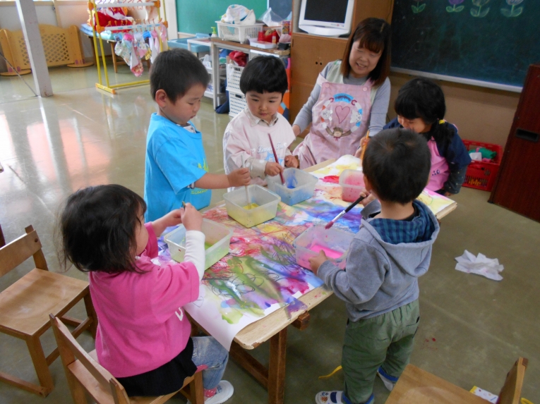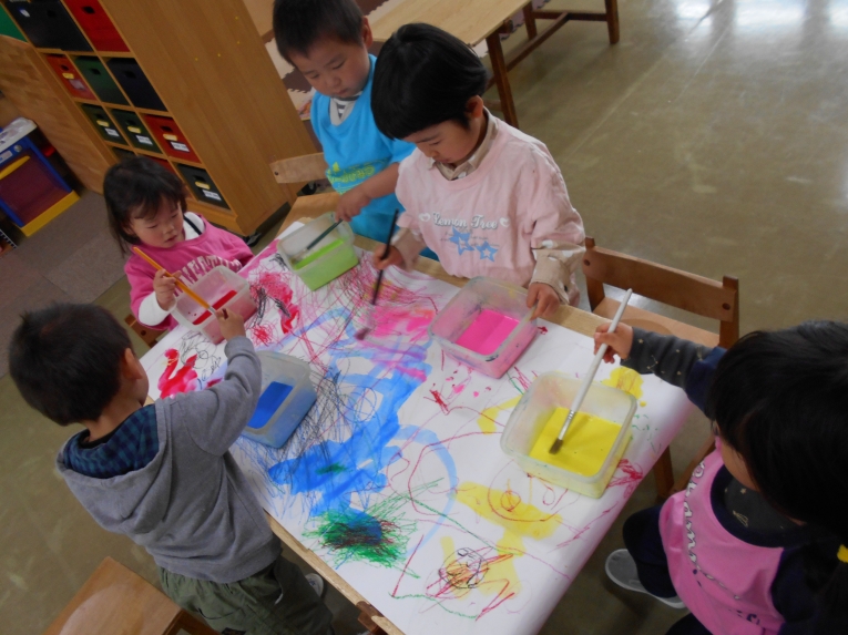 絵の具あそびも楽しみました。みんなで自由にぬりぬり