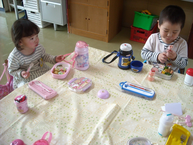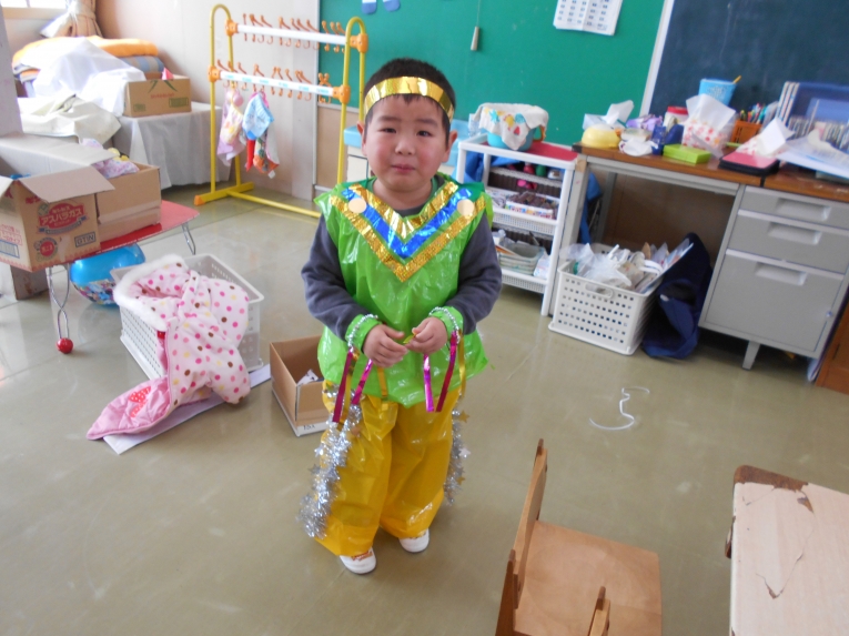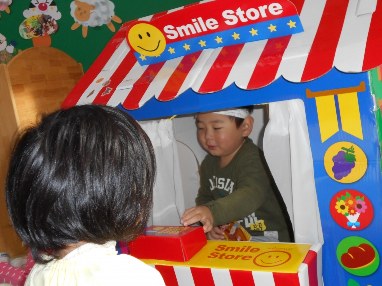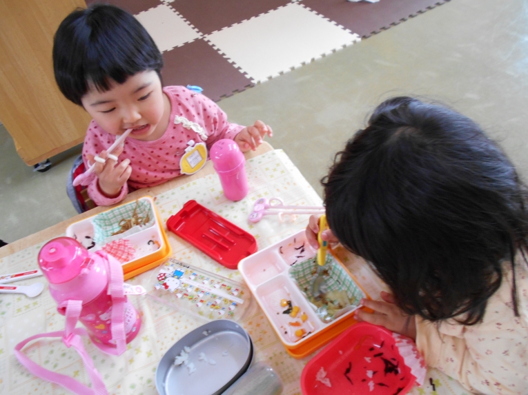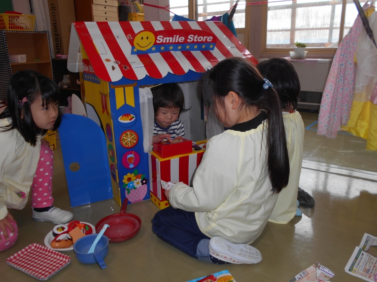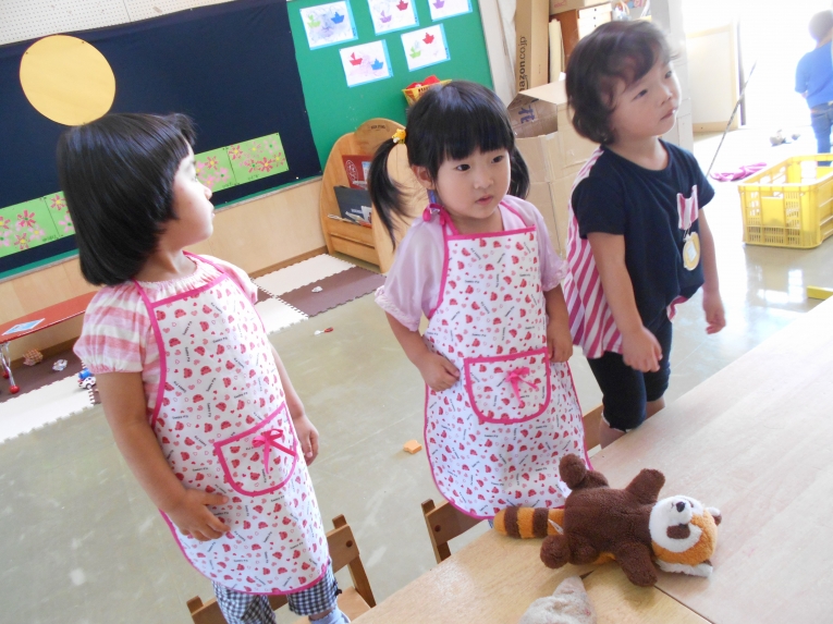 あそびの様子から・・・エプロンつけてお店屋さんごっこ??