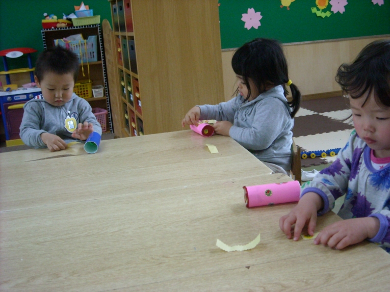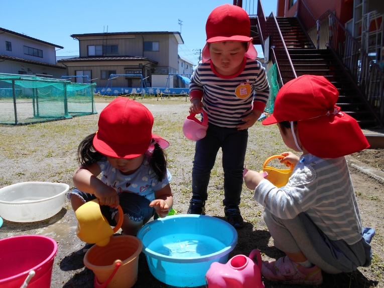 5月に入ってからのひよこ組さん!園生活にもだいぶ慣れて色々なことに興味を持つようになりました。今までは自分のことで精一杯だったけど、近頃は友達がしていることに興味津々の様子です物の取り合いや喧嘩までにはいたらないトラブルが出てきました