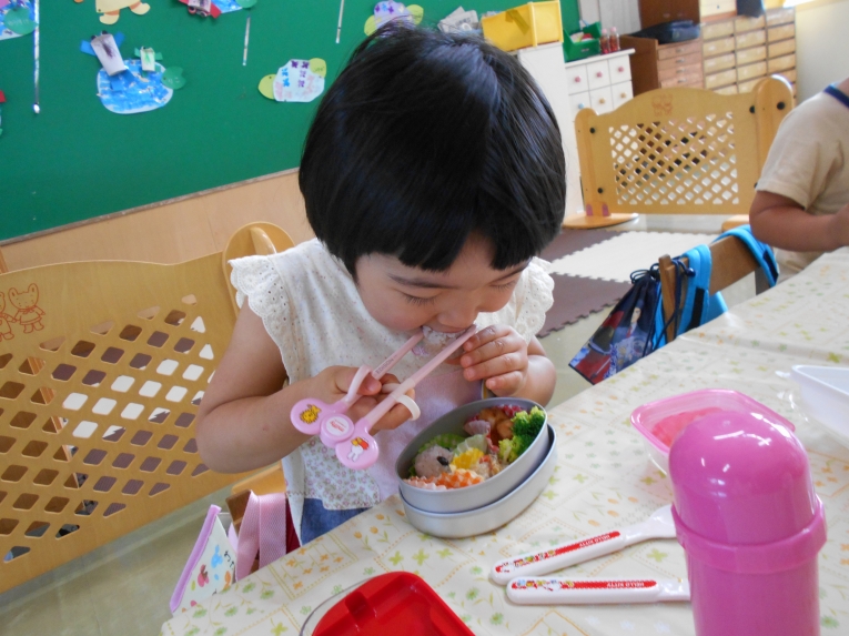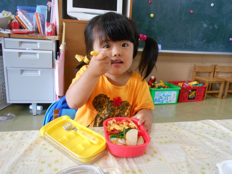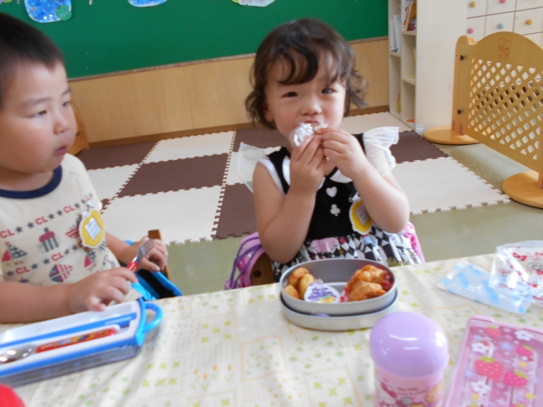 いっぱい遊んだあとの給食!完食する子が増えてきました。いっぱい食べて大きくなろうね