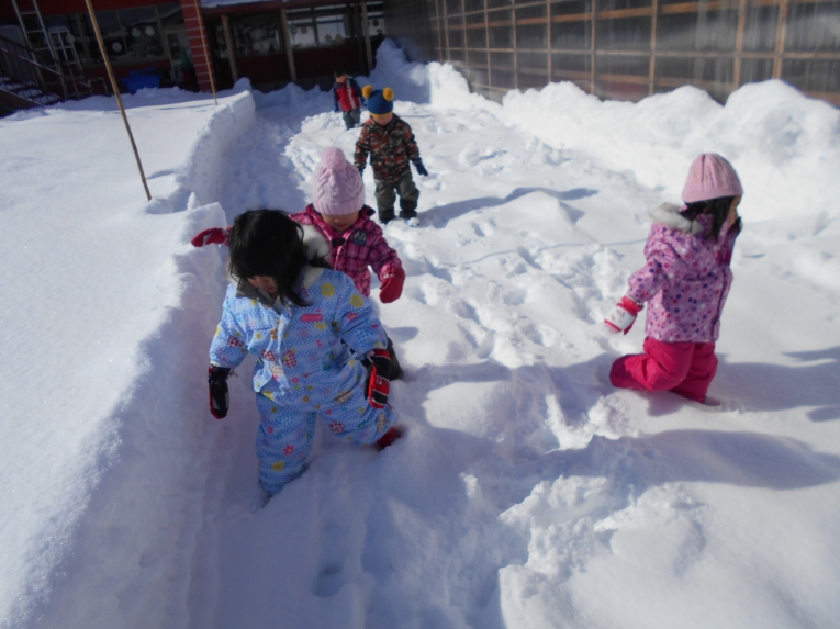 いよいよ2018年の幕開けですね!今年は戌年!元気に走り回るひよこちゃんにぴったりの年かもしれません雪がたくさん降り積もる中、寒さに負けず元気いっぱいのひよこ組さんは毎日雪遊びが待ち遠しい様子です。室内あそびを充実させ、晴れた日はたくさん雪遊びができるよう計画していきたいと思います