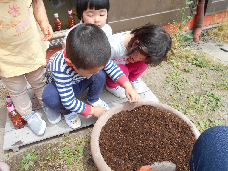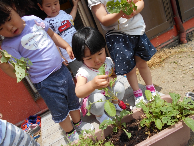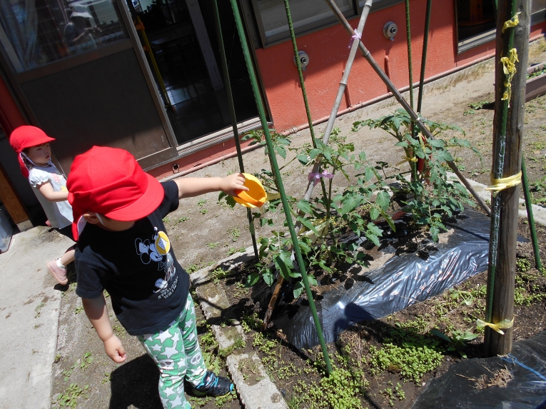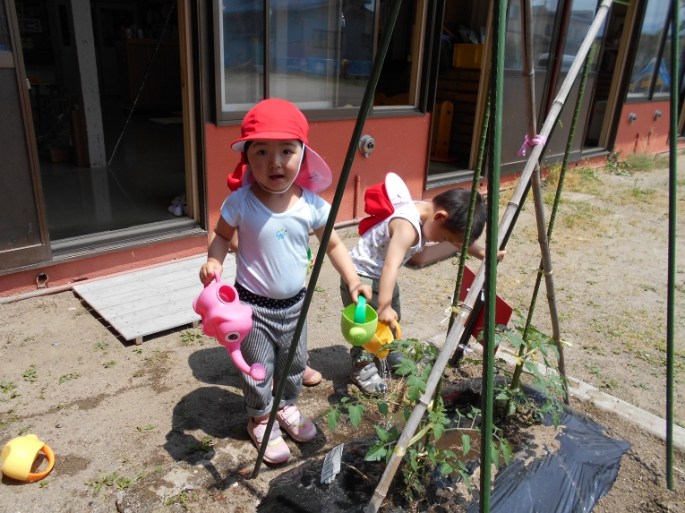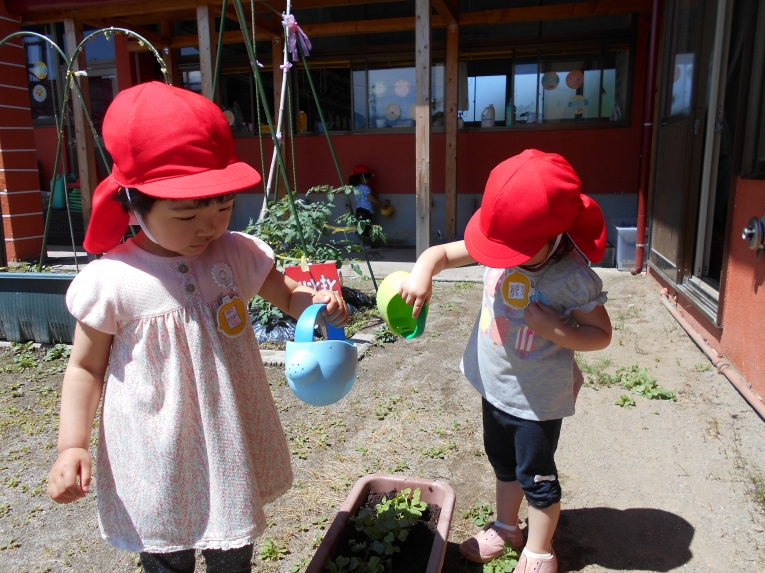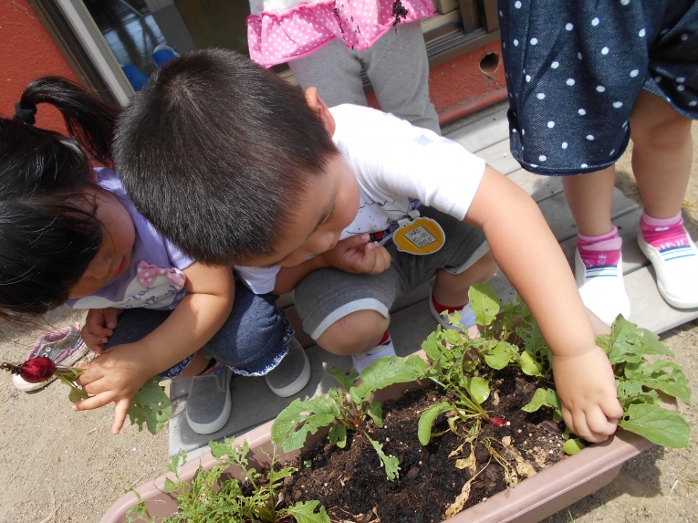 今までの暑さはどこへやら??今週は肌寒い日が多かったですねみんなで育てているミニトマトや二十日大根も少しずつ生長し、子どもたちはますます水やりを楽しんでいます