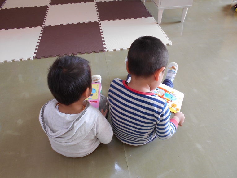 男同士仲良く絵本タイム?