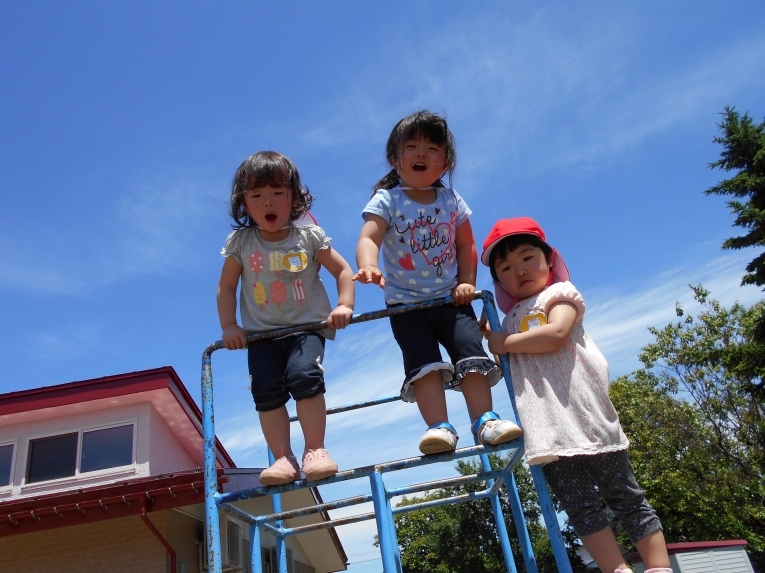 おてんば3人娘はジャングルジムのてっぺんで。。。